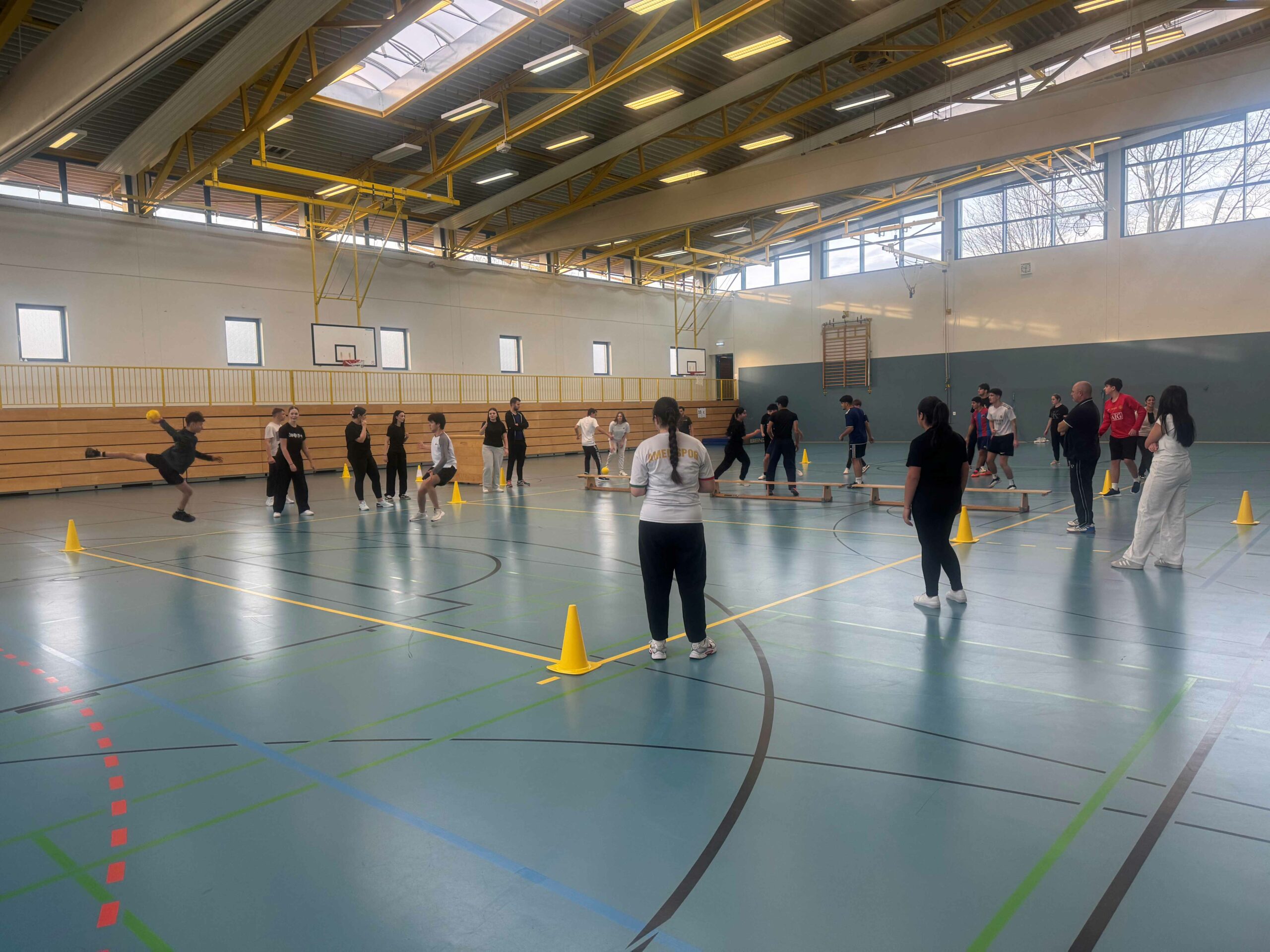 Am Donnerstag, den 27. November 2025, fand in unserer Vierfeldsporthalle der diesjährige Sportspieltag des Jahrgangs 10 statt. Wie zuvor geplant, wurde ein großes Völkerballturnier ausgetragen, bei dem die drei Klassen des Jahrgangs gegeneinander antraten. Das Spielfeld wurde zentral in der Halle aufgebaut, sodass alle Beteiligten beste Sicht- und Spielbedingungen hatten.